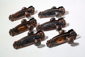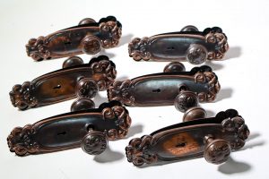 Florentine bronze units with loads of finder details throughout the plates and knobs.
