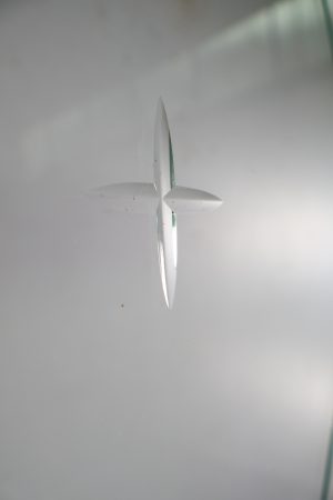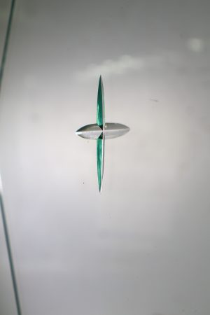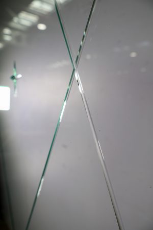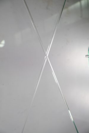 Clear glass with bevelled diamonds creating a very cool effect.