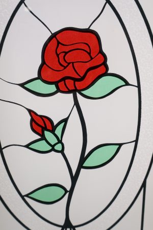 A chunky piece with rose glass inserts.