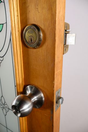 Comes with hinges, handle set, deadlock, striker plate and key.