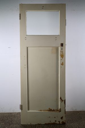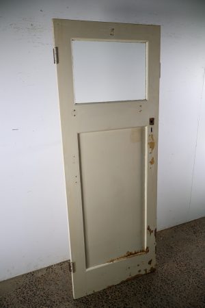 Small hammered glass door from a 1930’s home. Hardwood timber with hinges and mortice lock.