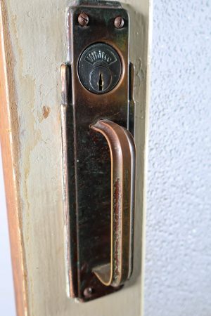 Original pull handle, Whitco deadlock, striker plate and hinges included.
