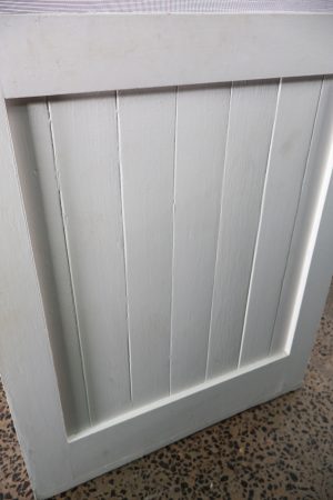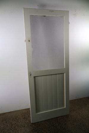 St Kilda flyscreen door made from hardwood timber, painted white.