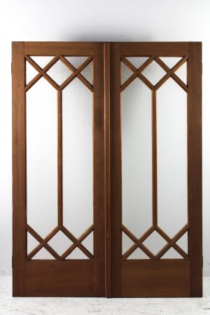 This stripped Deco door set has been professionally stripped back and sanded showing off it’s beautiful American redwood timber.