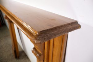 Sturdy recycled mantle made from pine timber.