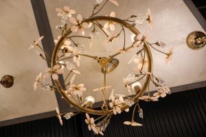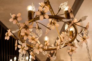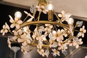 Used in the large room, this contains glass leaves and pink flowers to give a feminine touch.