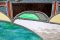 Kookaburra in the gum tree overlooking the bridge where water runs underneath.