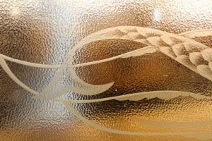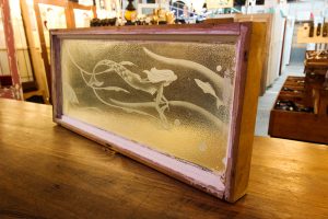 The Little Mermaid is an etched highlight window made from hardwood timber and containing rough cast privacy glass.