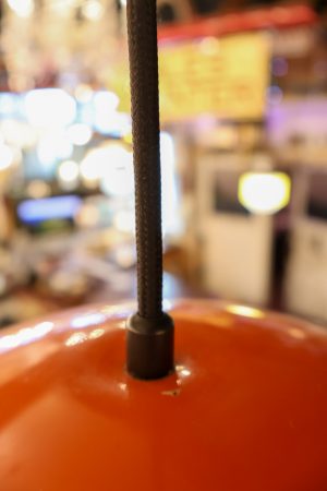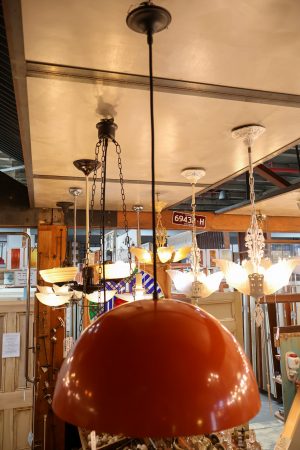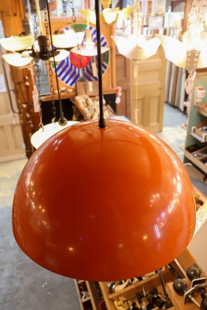 The retro Jaffa is a a funky number that would suit someone wanting to take a trip back in time. Eye catching orange shade on a brand new patina drop cord suspension.