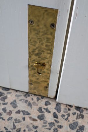 Brass hardware has been removed since photos were taken, but we have plenty of various hardware to choose from in our showroom.