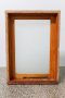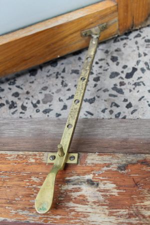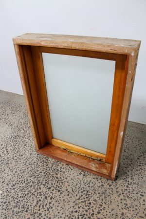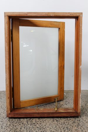 Translucent glass casement window , hardwood frame with aged brass casement stay.