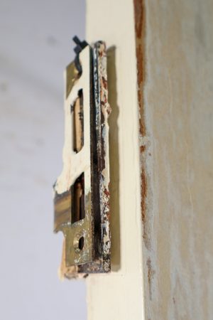 The classic 4 panel design, with hinges, mortice lock and striker plate.