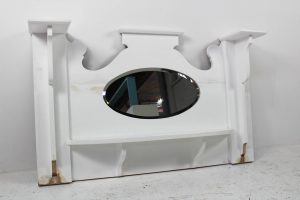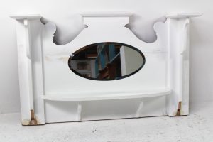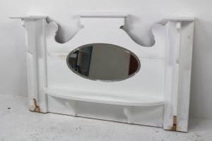 Wall mounted feature mirror piece with oval bevelled edge mirror.